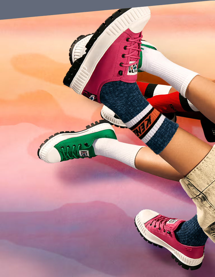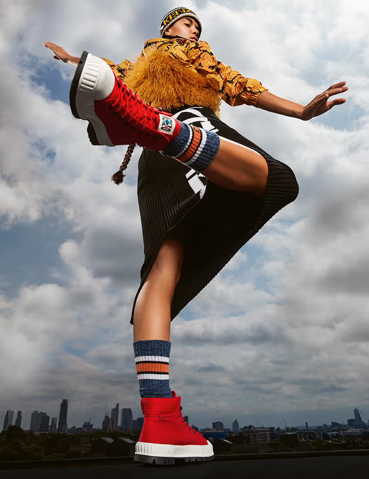 The PALLADIUM Pallashock by KENZO channels the headstrong spirit of today’s global explorers. The collaboration feeds into the idea of the bold and the audacious; connected adventurers and new urban leaders. An opportunity to create the unexpected, harnessing an unleashed spirit who dares to explore.