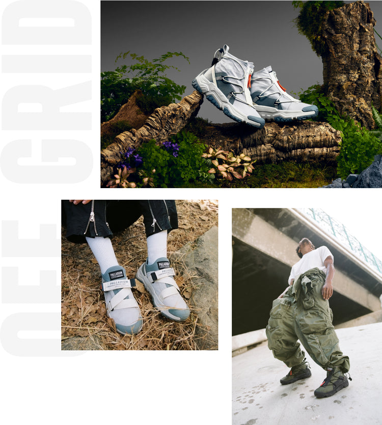 In a new era of mobility and travel the new OFF-GRID style presents a sneaker and sneaker-boot which blend urban and outdoor stylistic reference points. Featuring Palladium’s new anatomical outsole that provides the utmost comfort, this style is equipped with an EVA midsole, internal gusset protection and an external waterproof zipper. As an ode, it also features Palladium’s iconic toe-cap.