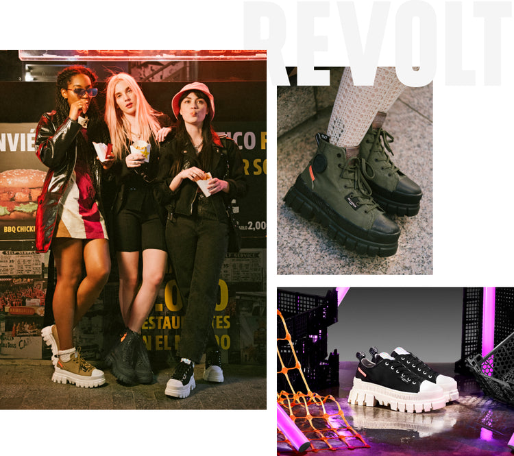 The REVOLT collection offers styles to those who really doesn’t follow the rules but make the rules. Exaggerated outsole is the key feature of REVOLT styles. Available as hi-tops and low-tops, REVOLT collection will make you stand out no matter where you are.